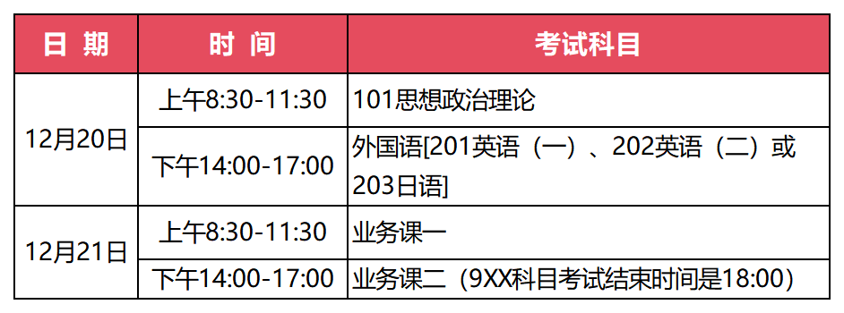 (二)考试时间安排